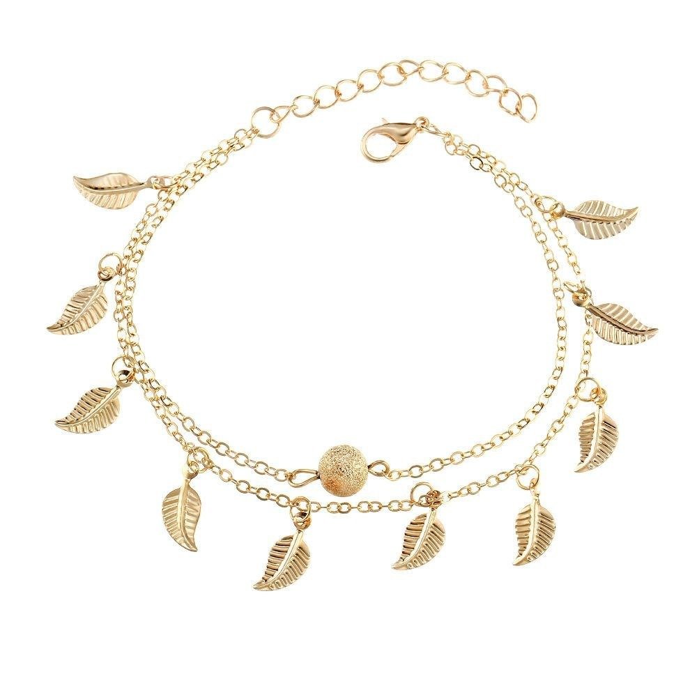 Vintage Double-Layer Leaf Anklet for Women – Beach Tassel Jewelry
