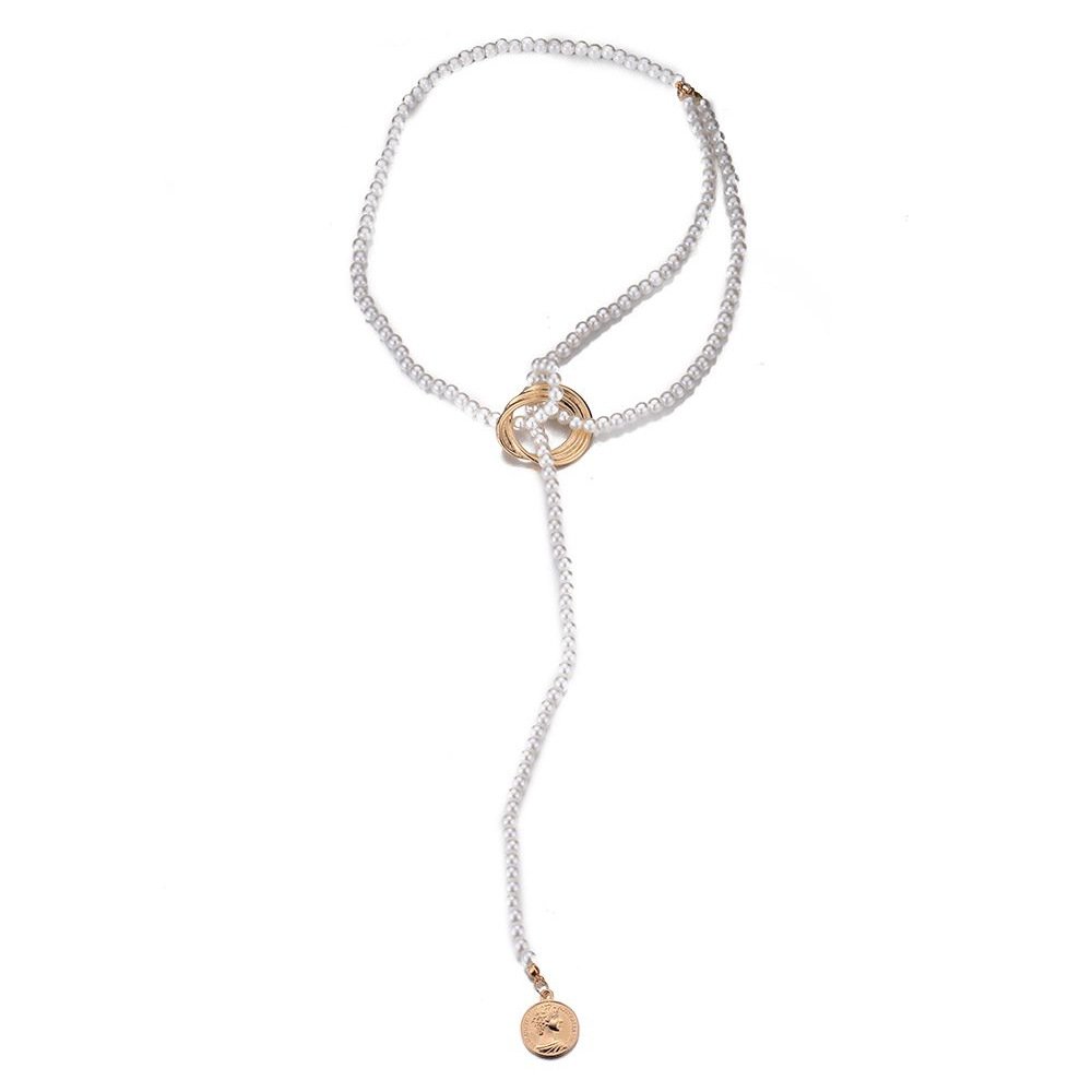 to any outfit. Designed with smooth imitation pearls and a lightweight alloy chain, this